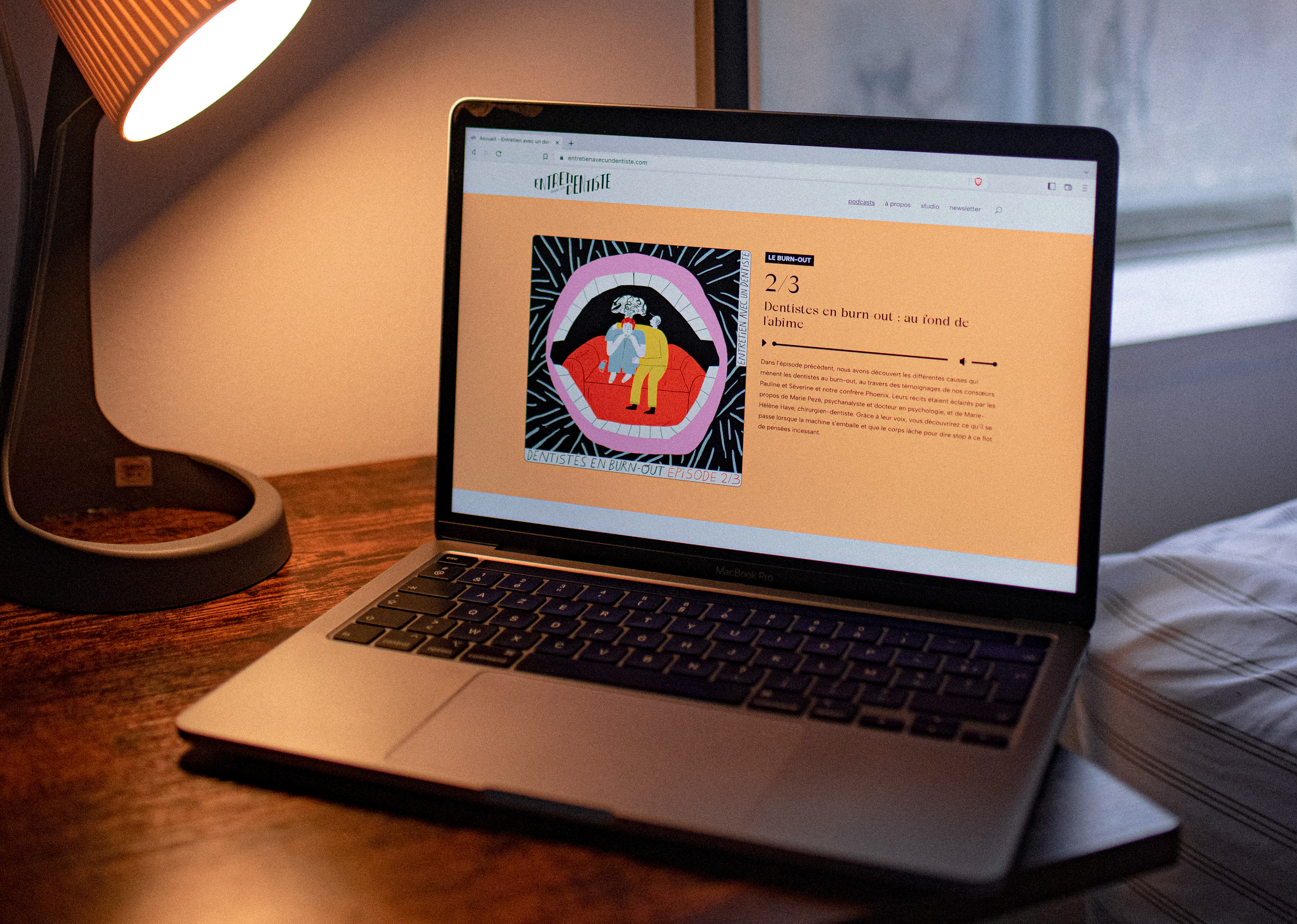 Florence Etcheverry, dentiste et fondatrice d'un podcast évoquant les problématiques de la profession au-delà de la seule technique, souhaitait lancer la nouvelle saison du podcast. Je l'ai accompagnée pour refondre l'identité visuelle du podcast, et ses déclinaisons sur la newsletter, les réseaux sociaux, ainsi qu'un nouveau site web.