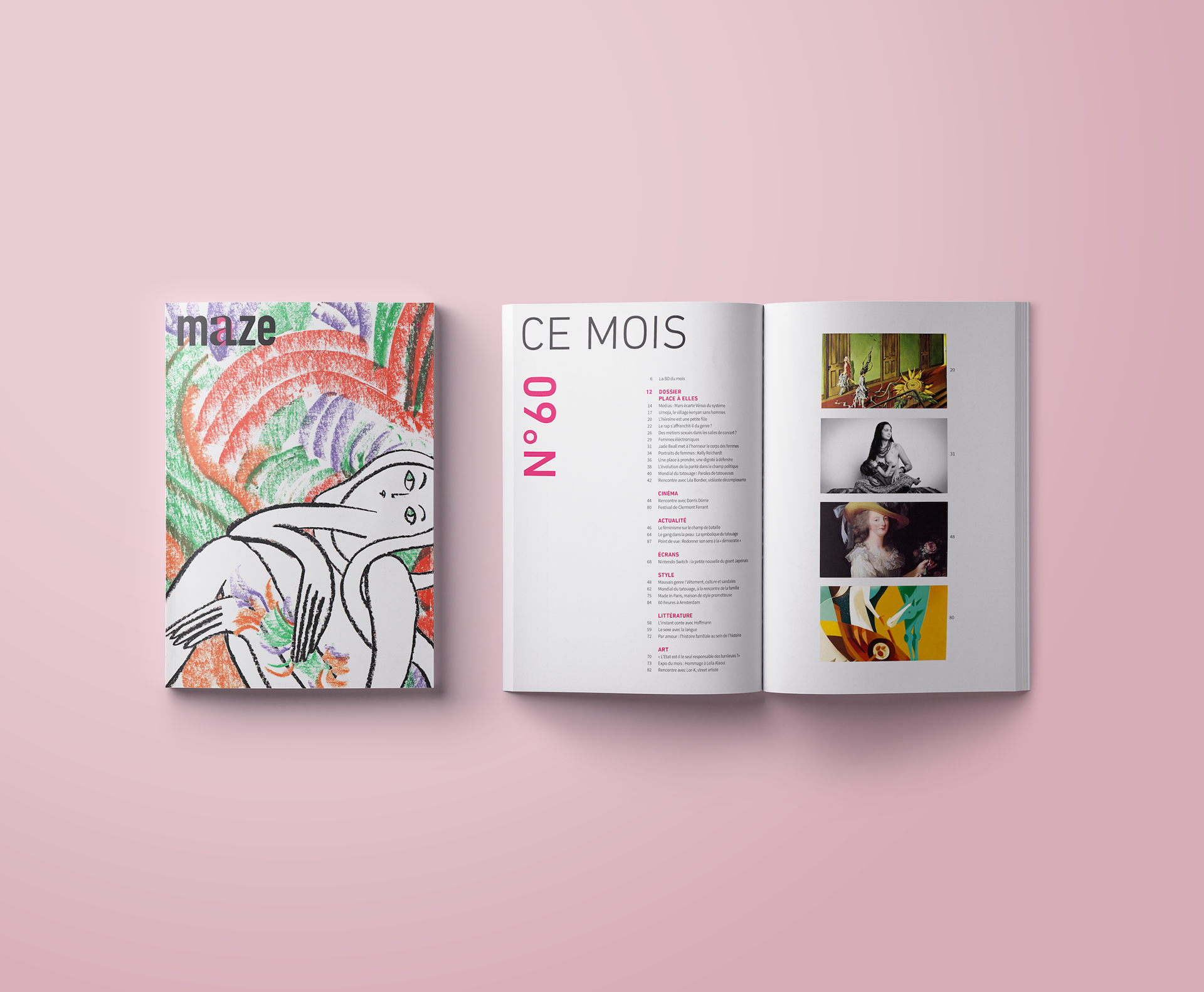 , conception des maquettes flexibles, mise en page, et commande ou réalisation d'illustrations et photos de couverture.