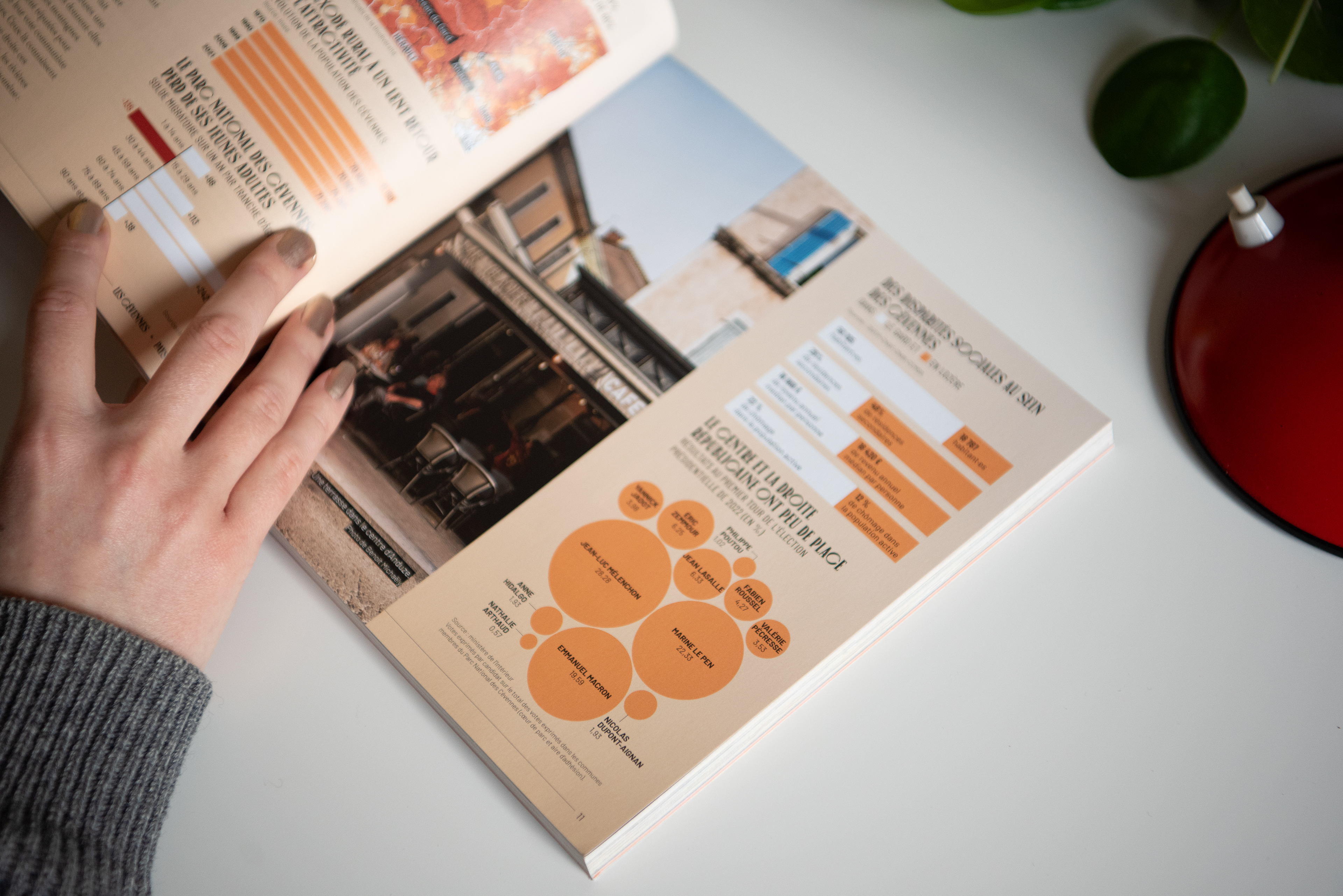 Pour ce septième numéro, en tant que directrice artistique et cofondatrice, j'ai choisi les couleurs du numéro, mis en page la revue et créé les cartes et infographies.