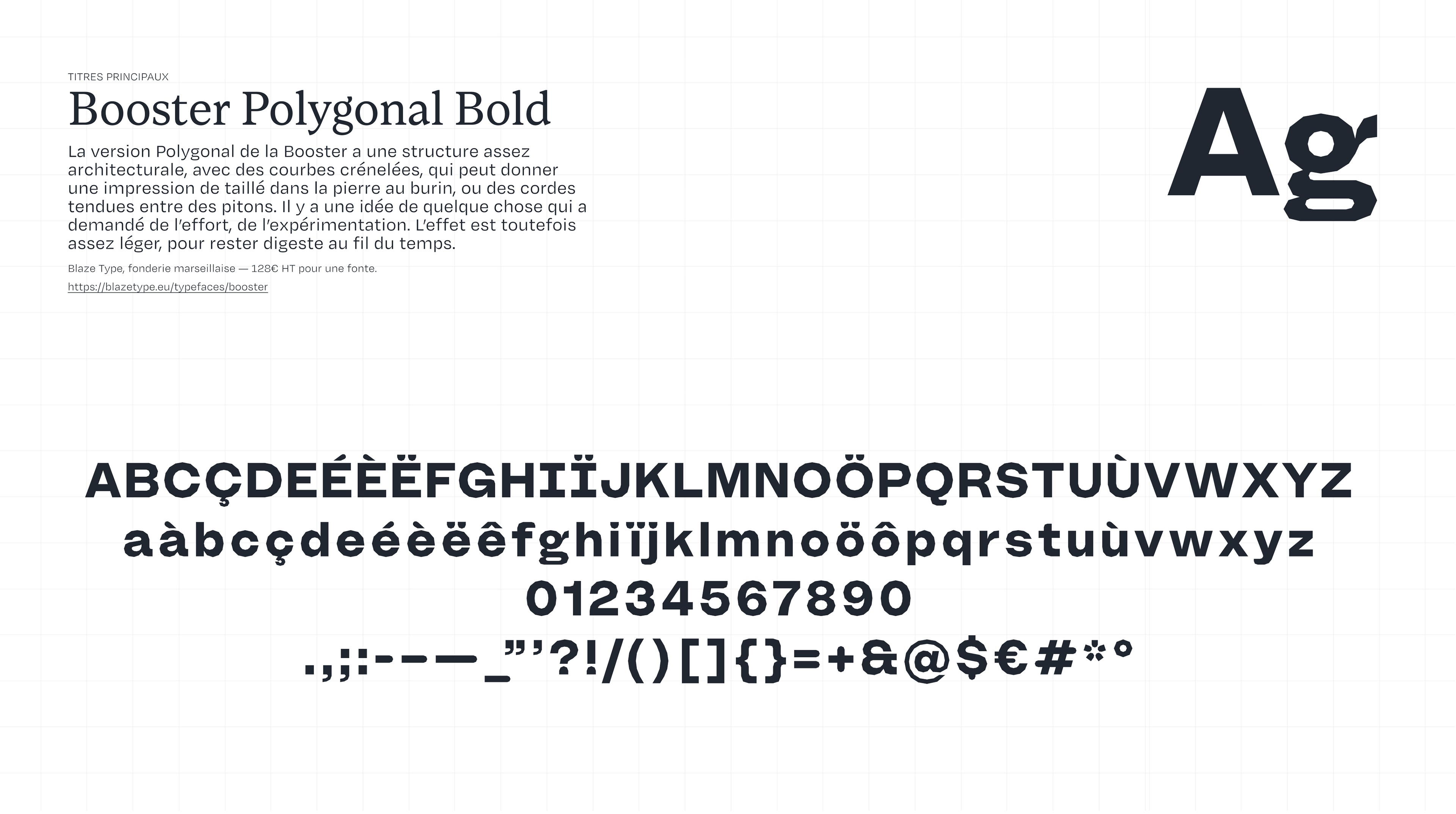 Une nouvelle police de titrage avec une personnalité forte, sans être trop marquée et lassante.